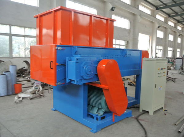 物料通过进料系统进入撕碎箱体内部,箱体上承载有撕碎刀片,推料箱将物料推至刀片附近,物料经过撕碎刀片撕扯、挤压、剪切等综合作用,撕碎成小块的物料,从筛网孔中排出。
